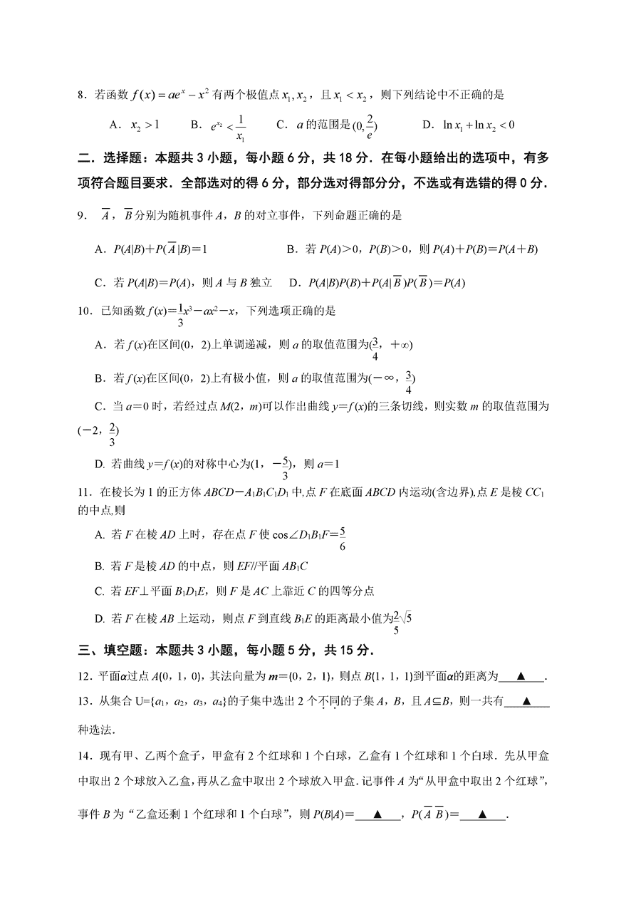 南京市六校联合体2023-2024学年高二下期末调研数学试题及答案