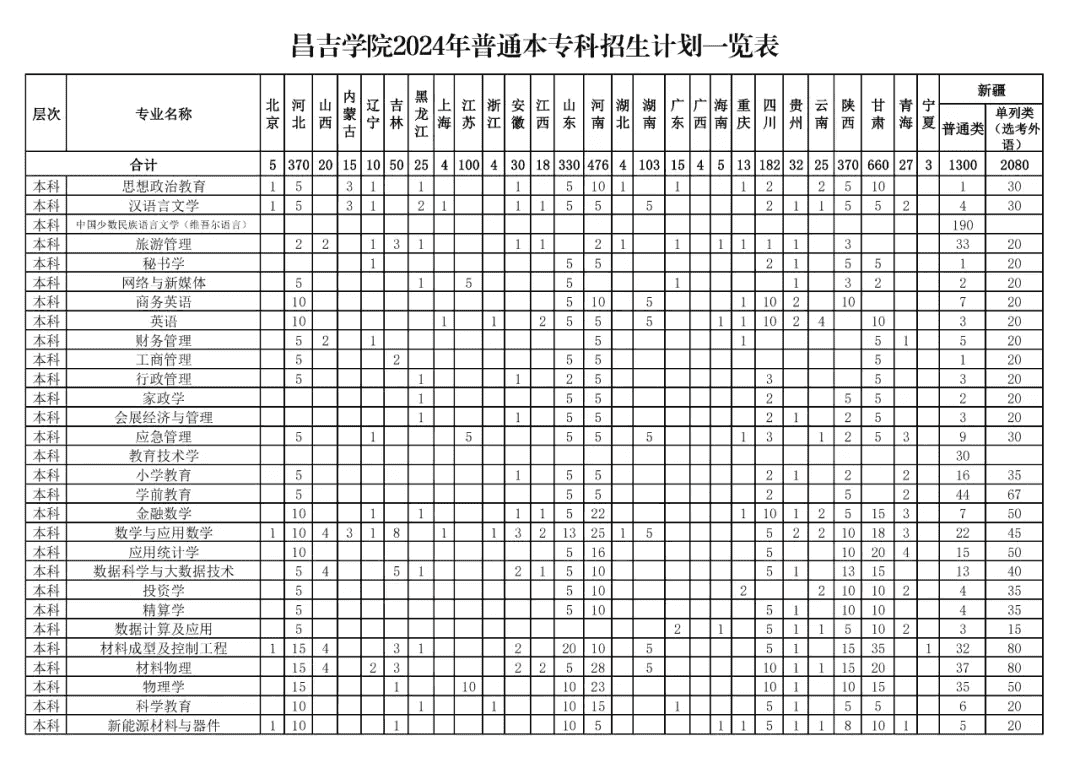 本文为大家整理的是昌吉学院2024年招生计划,主要包含招生专业、招生类别、各专业招生人数等信息,希望对大家有所帮助,如有变动或异议,请以各省市教育考试院或学校公布的信息为准。