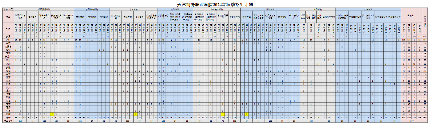 本文为大家整理的是天津商务职业学院2024年招生计划,主要包含招生专业、招生类别、各专业招生人数等信息,希望对大家有所帮助,如有变动或异议,请以各省市教育考试院或学校公布的信息为准。