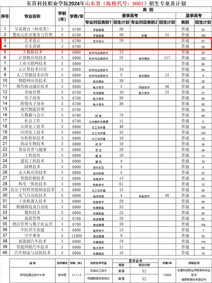 2024东营科技职业学院艺术类招生计划及各专业招生人数