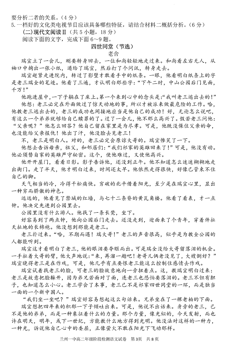 甘肃兰州一中2024-2025学年高二上学期开学阶段检测语文考试已于近日开考,为方便考生考后及时查看考试情况,查漏补缺、弥补不足,本文整理了试题答案解析相关信息!