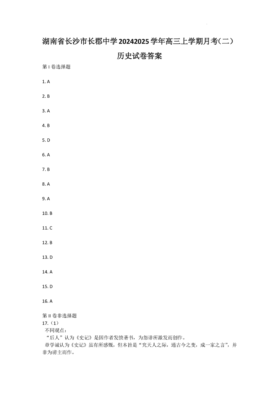 湖南长郡中学 2025 届高三月考试卷(二)历史考试已于近日开考,为方便考生考后及时查看考试情况,查漏补缺、弥补不足,本文整理了试题答案解析相关信息!