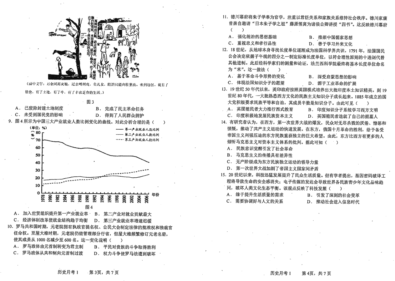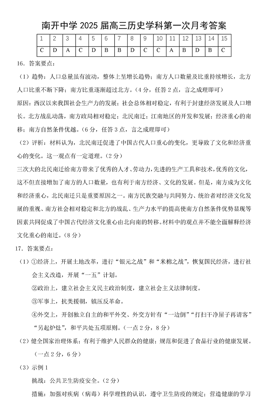 天津南开中学2024-2025学年高三上学期10月月考历史试题及答案