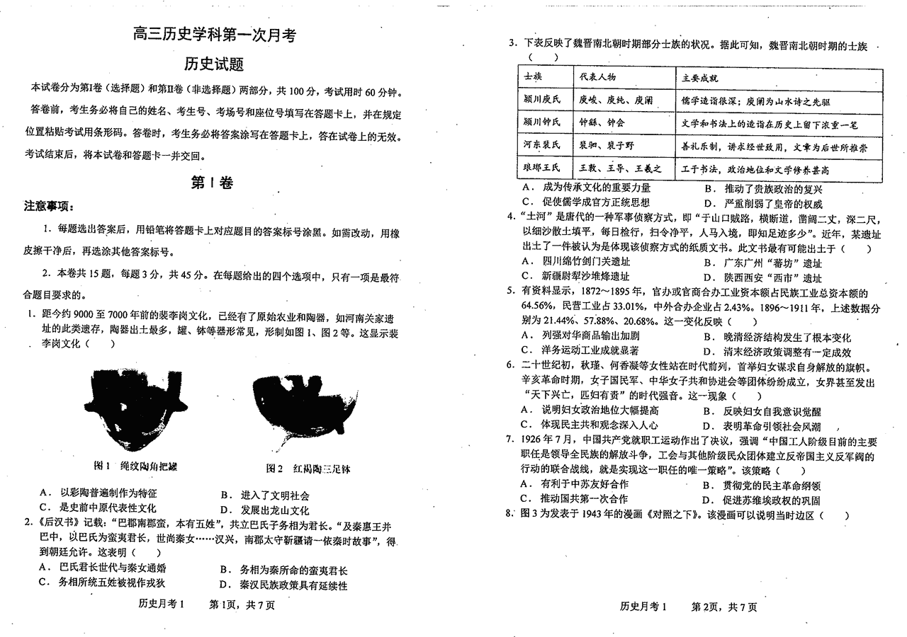 天津市南开中学2024-2025学年高三上学期10月月考历史考试已于近日开考,为方便考生考后及时查看考试情况,查漏补缺、弥补不足,本文整理了试题答案解析相关信息!