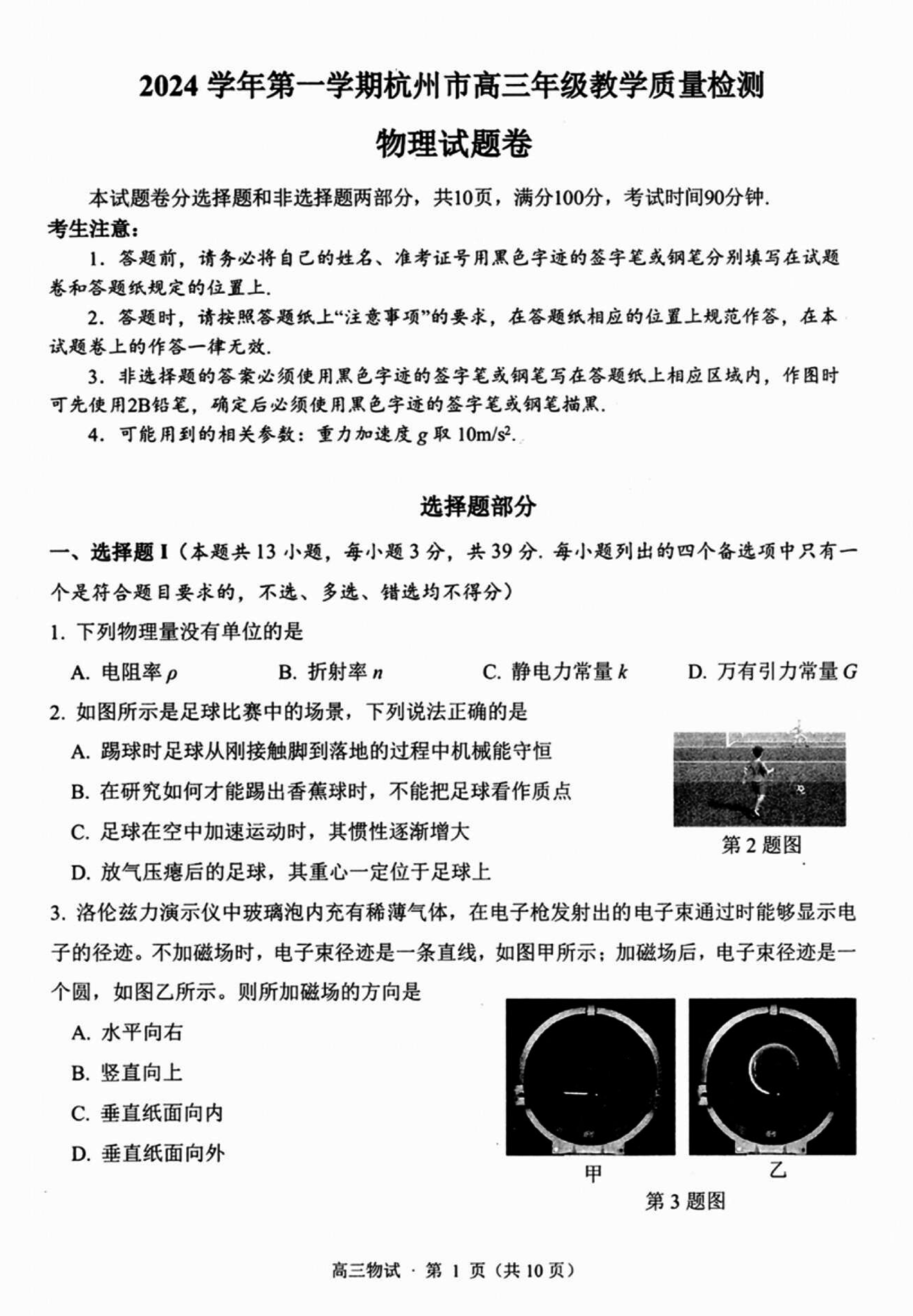 杭州一模2024学年杭州高三11月质检物理考试已于近日开考,为方便考生考后及时查看考试情况,查漏补缺、弥补不足,本文整理了试题答案解析相关信息!