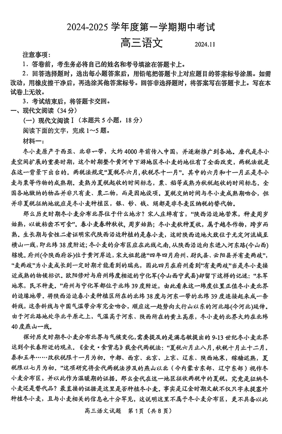 山东省青岛四区县2025届高三期中语文试题及答案 时间:2024-11-08 11:44 山东 语文试题 山东省青岛四区县2025届高三期中语文考试已于近日开考,为方便考生考后及时查看考试情况,查漏补缺、弥补不足,本文整理了试题答案解析相关信息! 汇总:山东省青岛四区县2025届高三期中考试试题及答案汇总 语文试题及答案解析