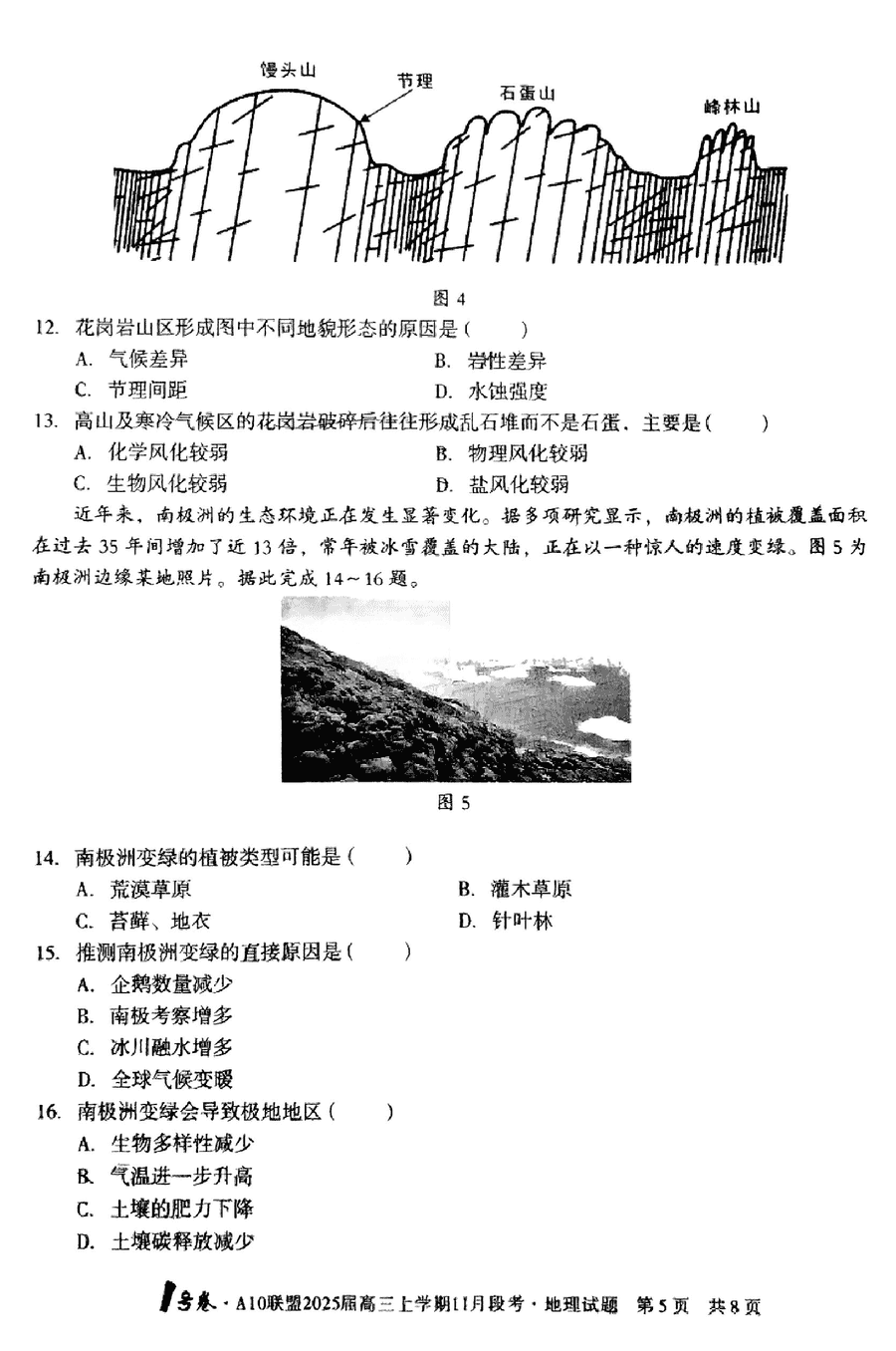 安徽A10联盟2025届高三11月段考地理试题及答案