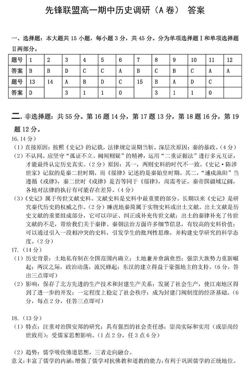 海南省先锋联盟2024-2025学年高一上学期11月期中历史考试已于近日开考,为方便考生考后及时查看考试情况,查漏补缺、弥补不足,本文整理了试题答案解析相关信息!