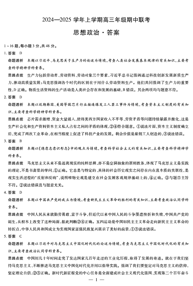 安徽卓越县中联盟2025届高三11月期中政治考试已于近日开考,为方便考生考后及时查看考试情况,查漏补缺、弥补不足,本文整理了试题答案解析相关信息!