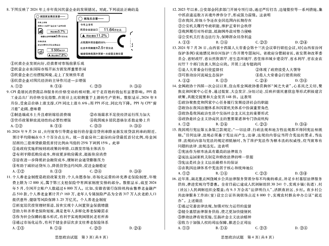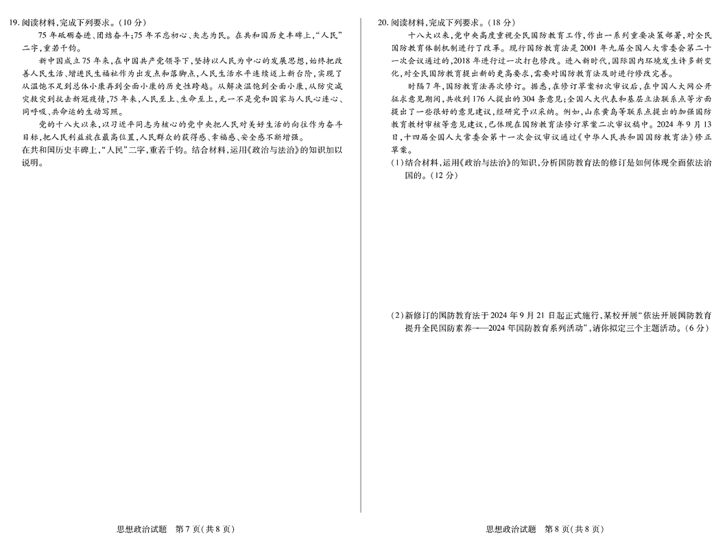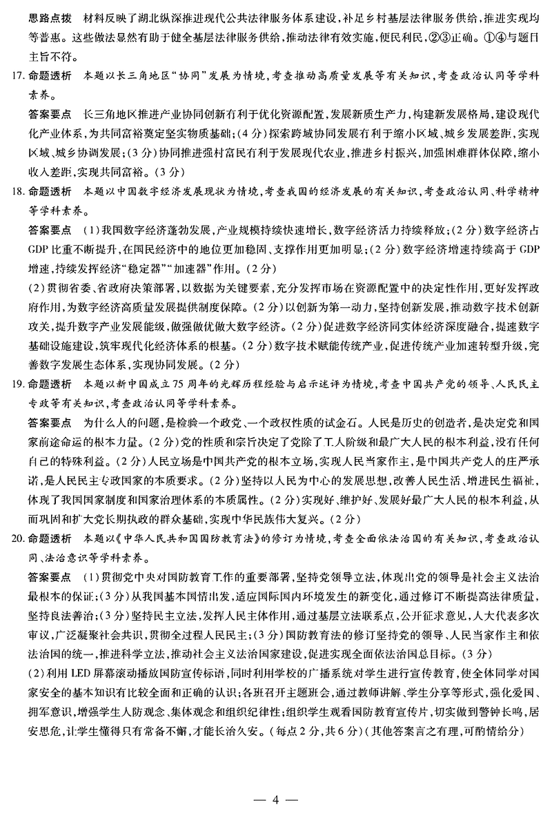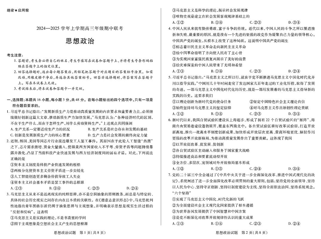 安徽卓越县中联盟2025届高三11月期中政治试题及答案