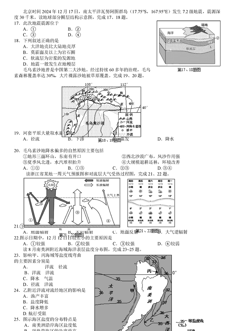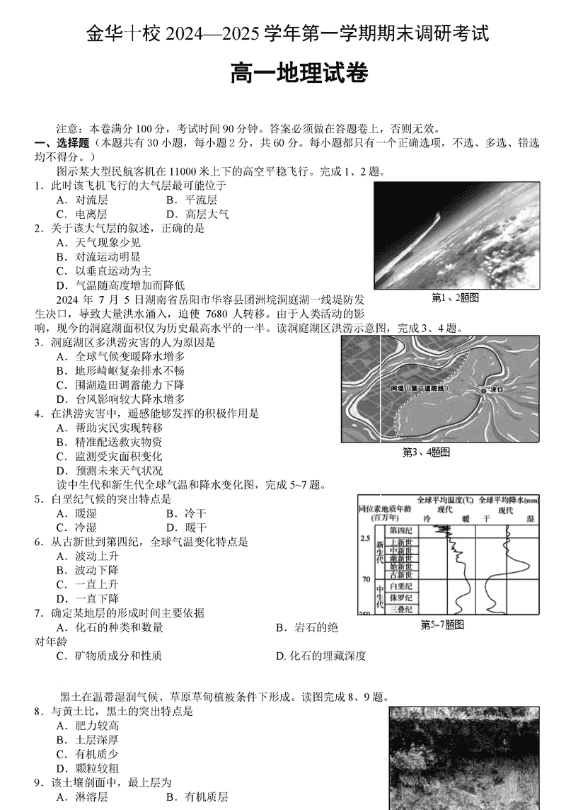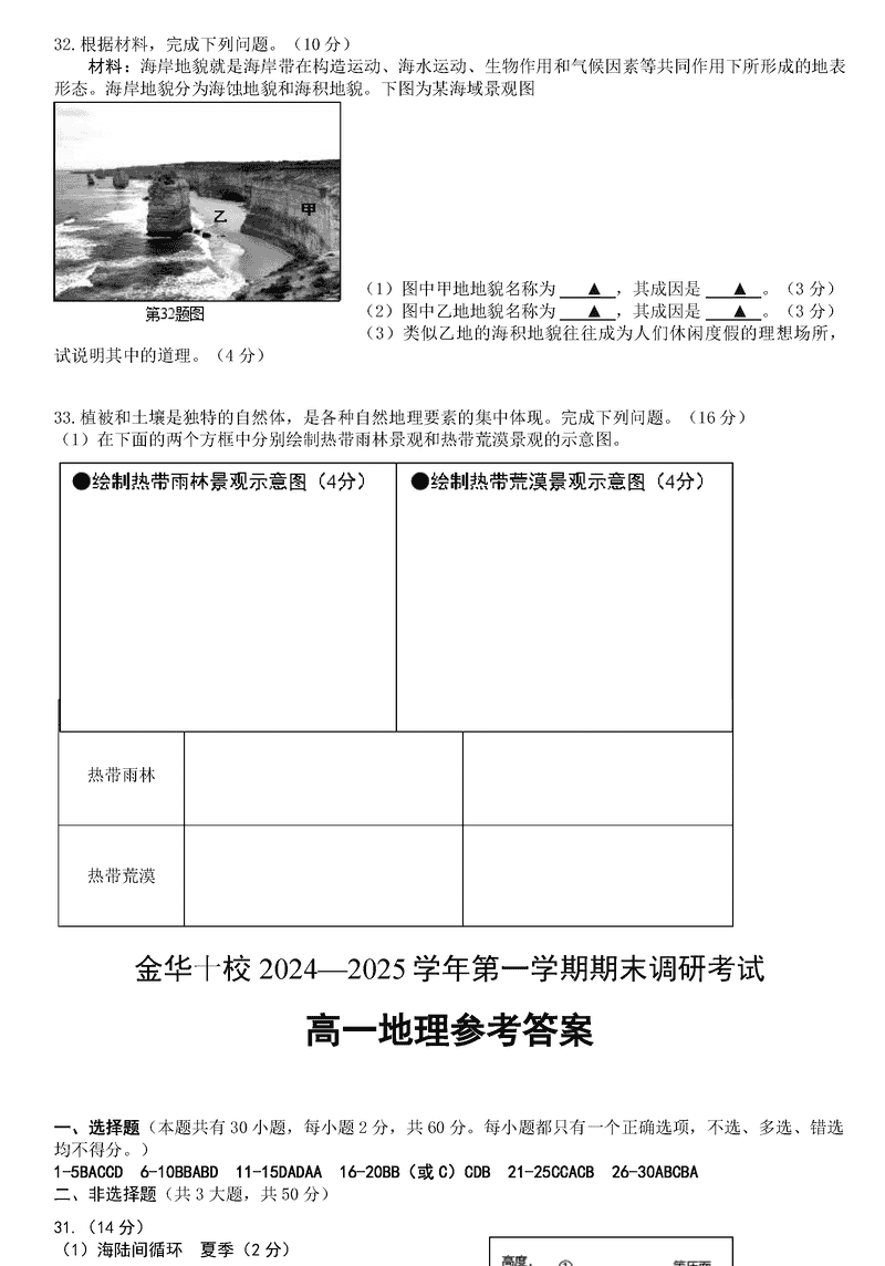 浙江省金华十校2024-2025学年高一上学期期末调研地理考试已于近日开考,为方便考生考后及时查看考试情况,查漏补缺、弥补不足,本文整理了试题答案解析相关信息!