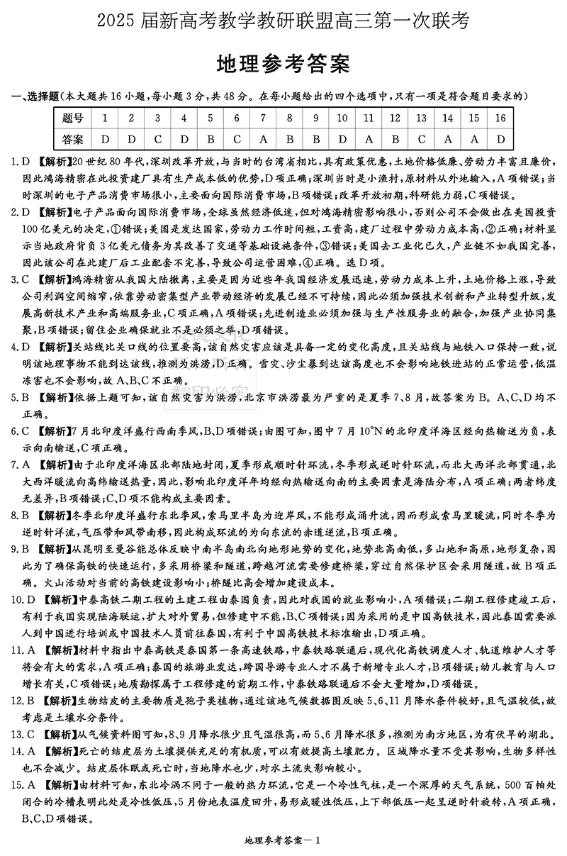 湖南省新高考教学教研联盟2025届第一次联考地理考试已于近日开考,为方便考生考后及时查看考试情况,查漏补缺、弥补不足,本文整理了试题答案解析相关信息!