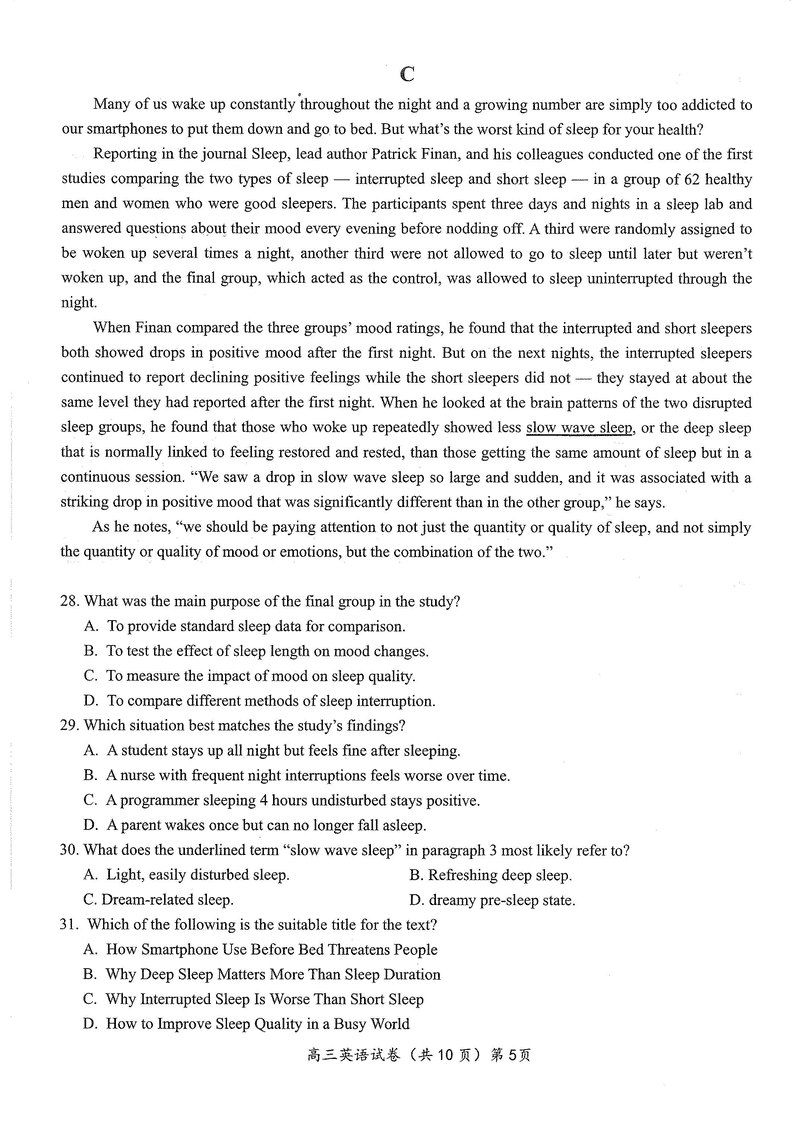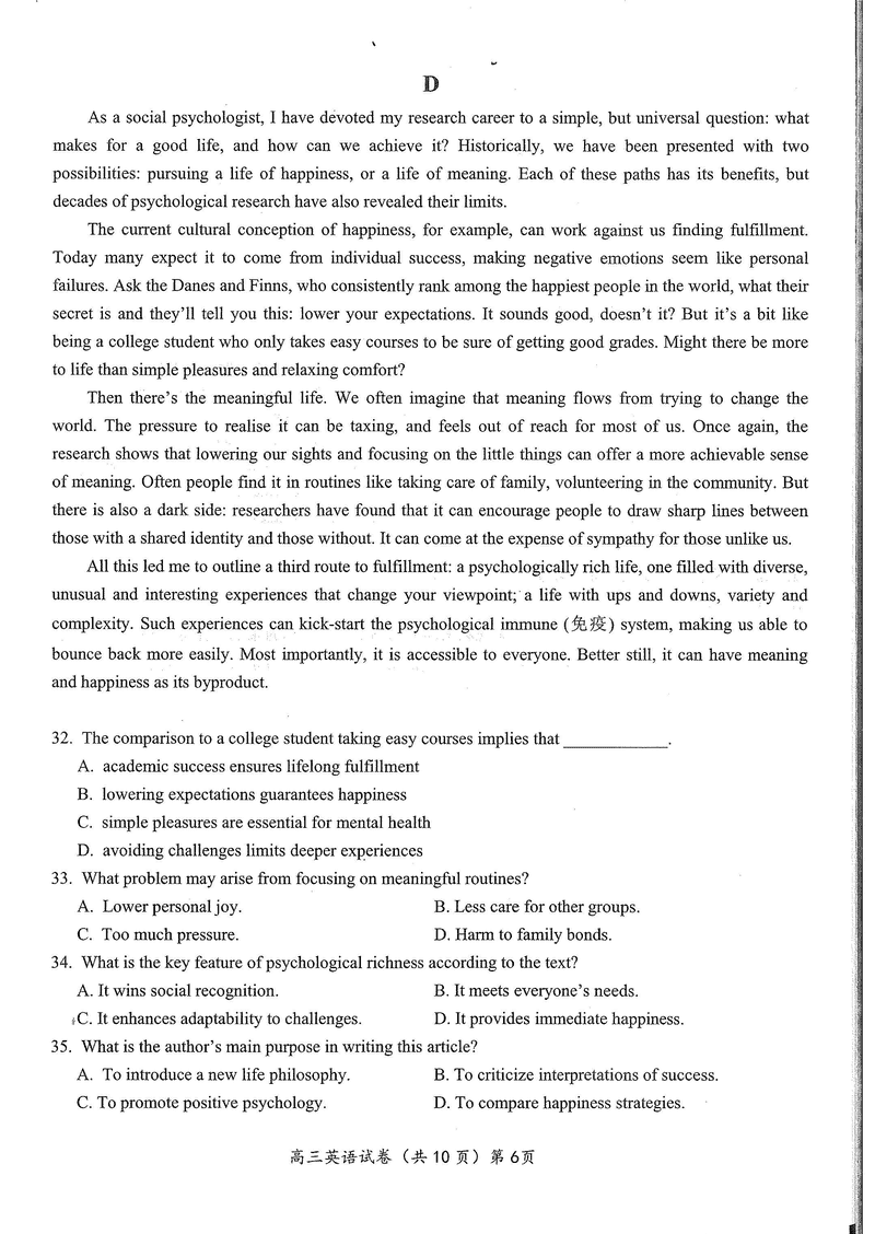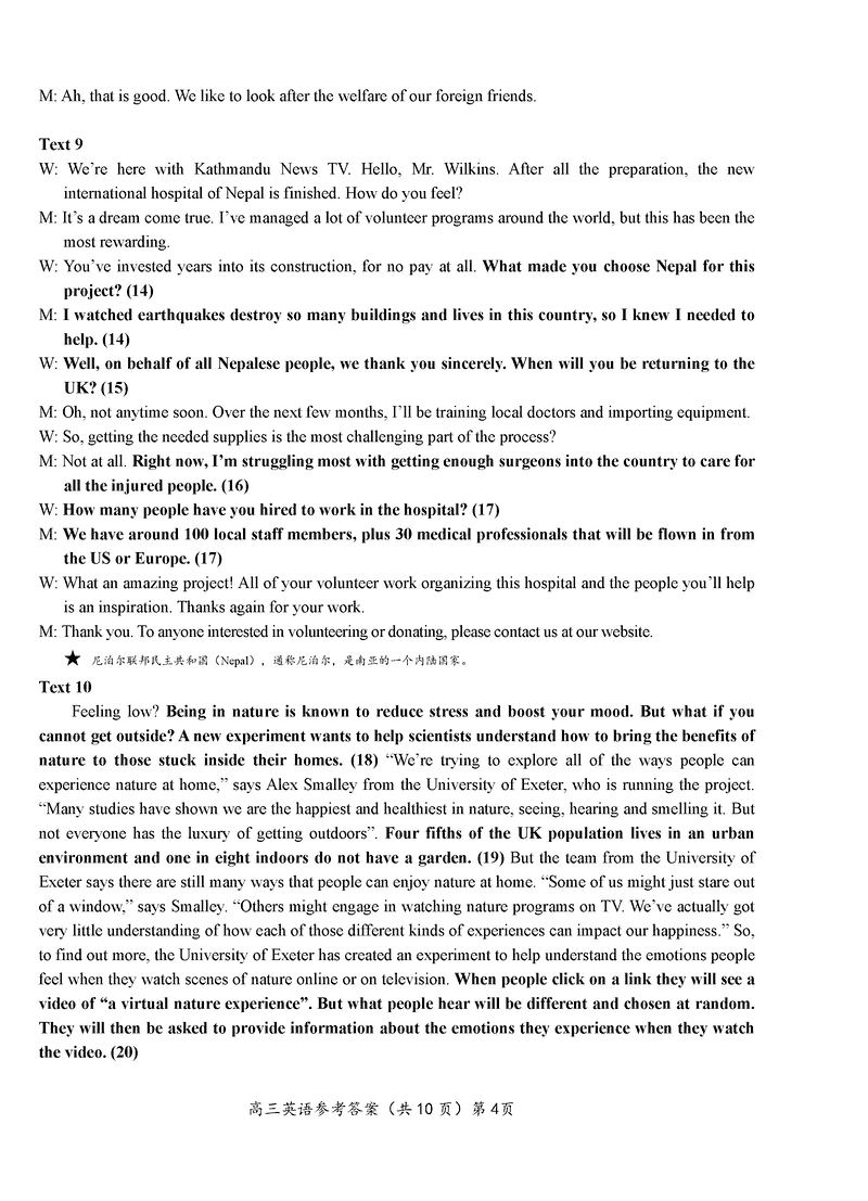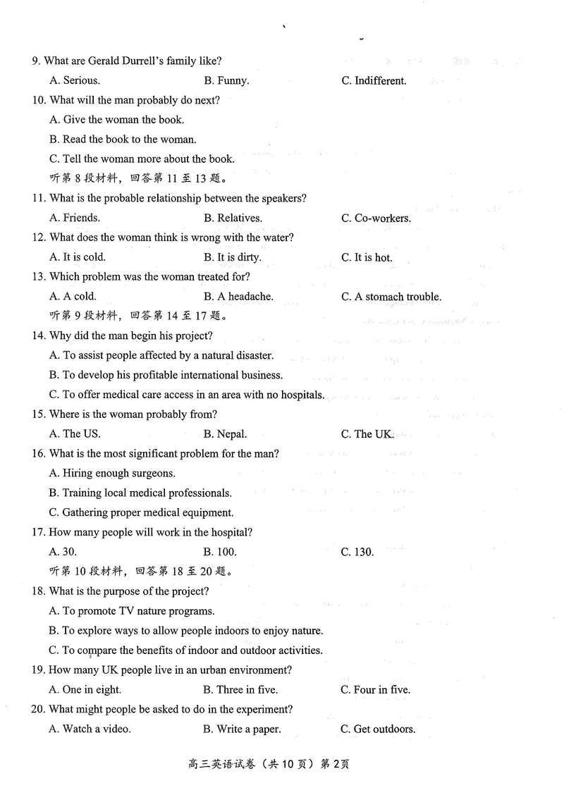 湖北 英语试题