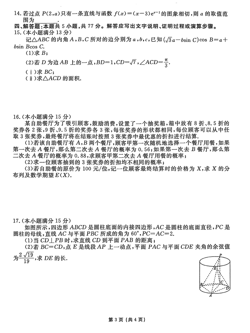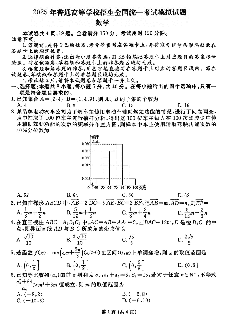 甘肃衡水金卷·先享题·信息卷2025届高三模拟五数学试题及答案