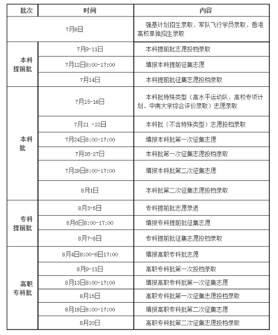 一、湖南省2025年普通高校招生录取时间表(一)
