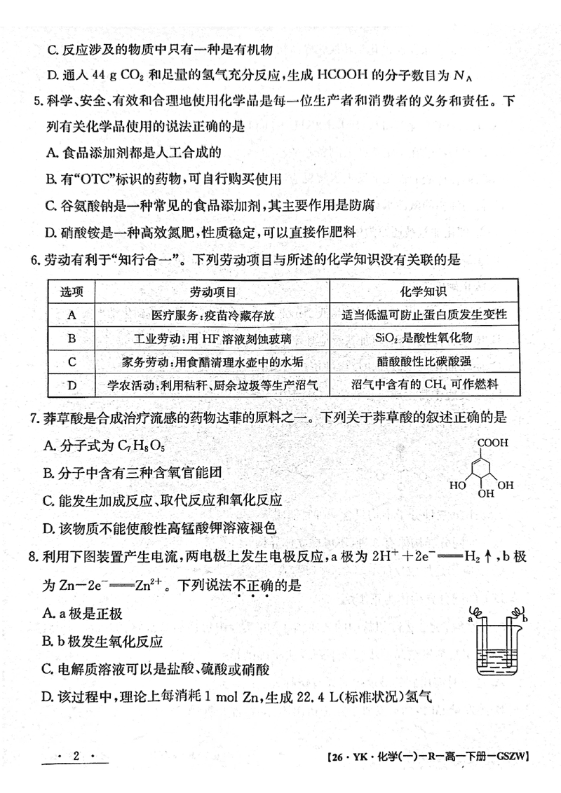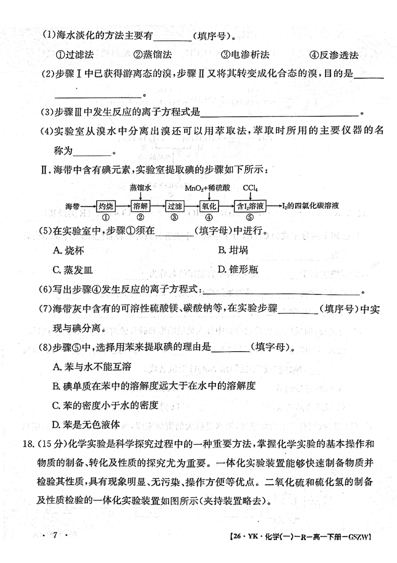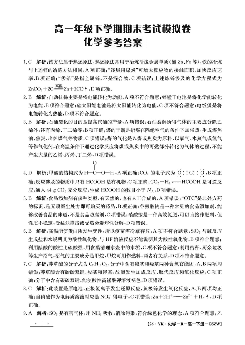 甘肃省2024-2025学年高一下学期期末化学试题及答案 时间:2025-07-08 甘肃 高中化学 甘肃省2024-2025学年高一年级下学期期末化学考试已于近日开考,为方便考生考后及时查看考试情况,查漏补缺、弥补不足,本文整理了试题答案解析相关信息! 化学试题及答案解析