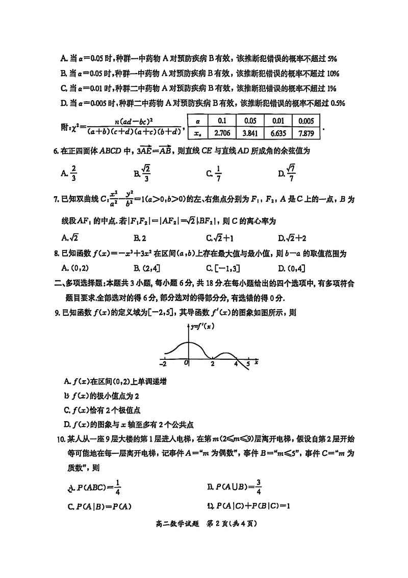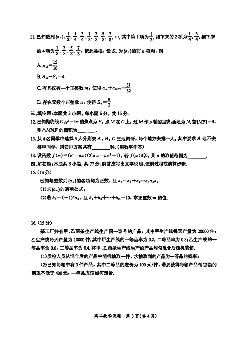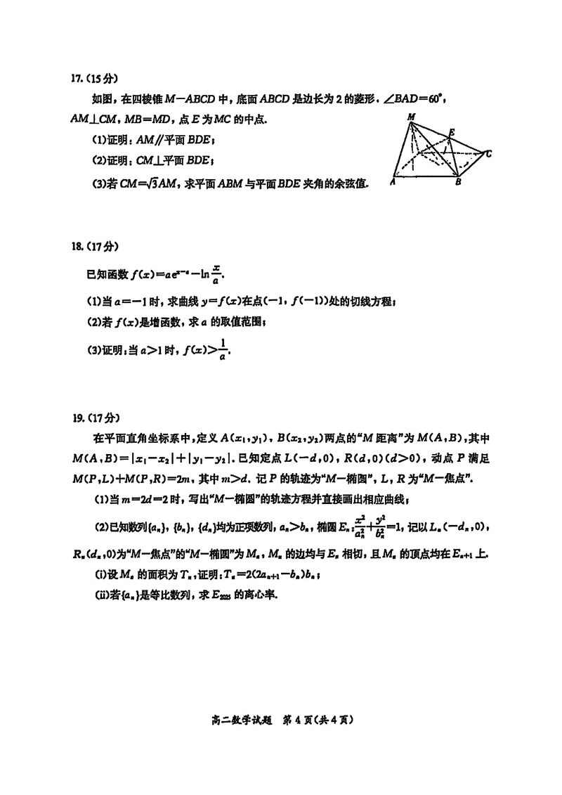 厦门市2024-2025学年高二下学期期末质检数学试题及答案