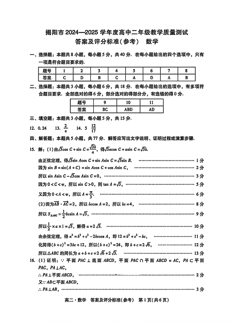 广东省揭阳市2024-2025学年高二下学期期末教学质量数学测试已于近日开考,为方便考生考后及时查看考试情况,查漏补缺、弥补不足,本文整理了试题答案解析相关信息!