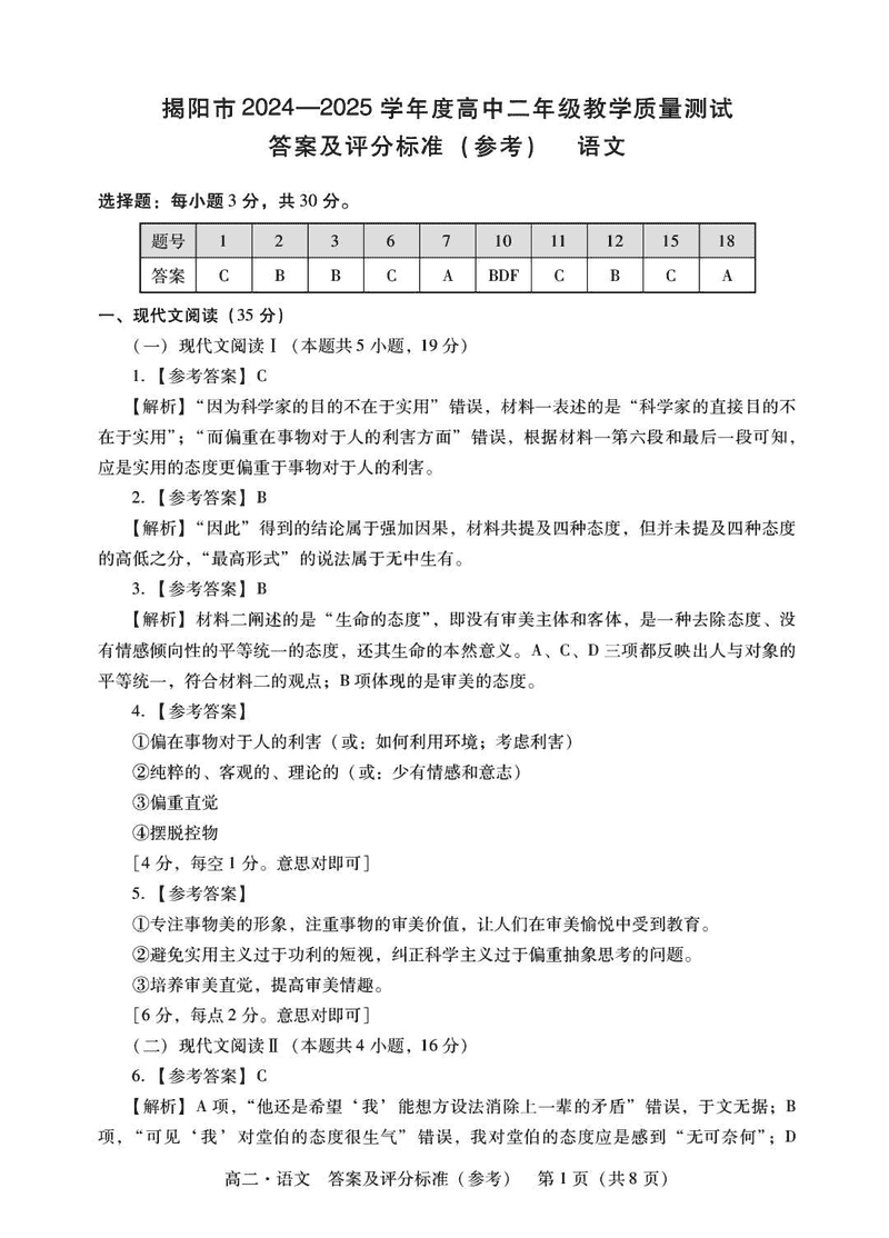 揭阳市2024-2025学年高二下学期期末语文试题及答案