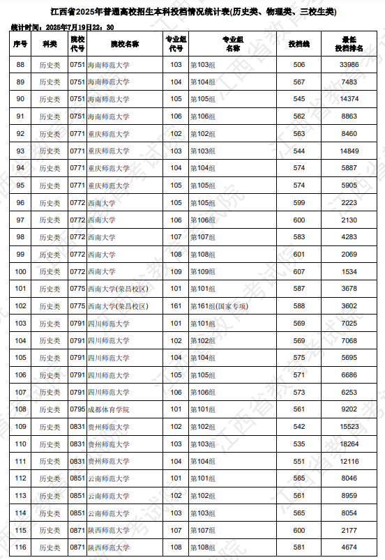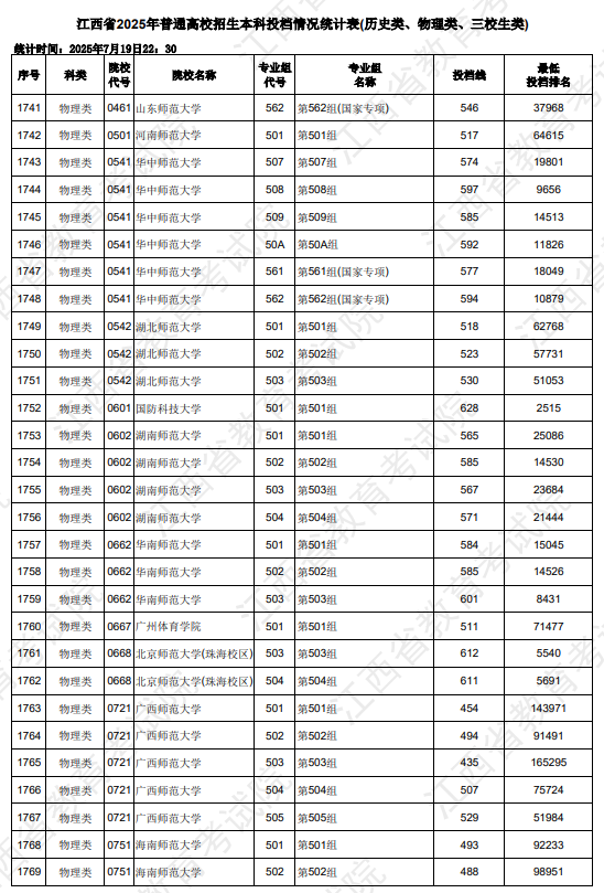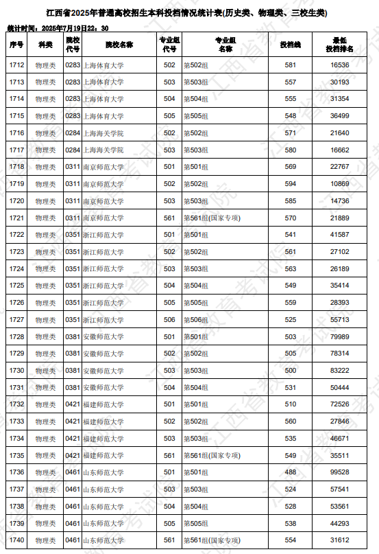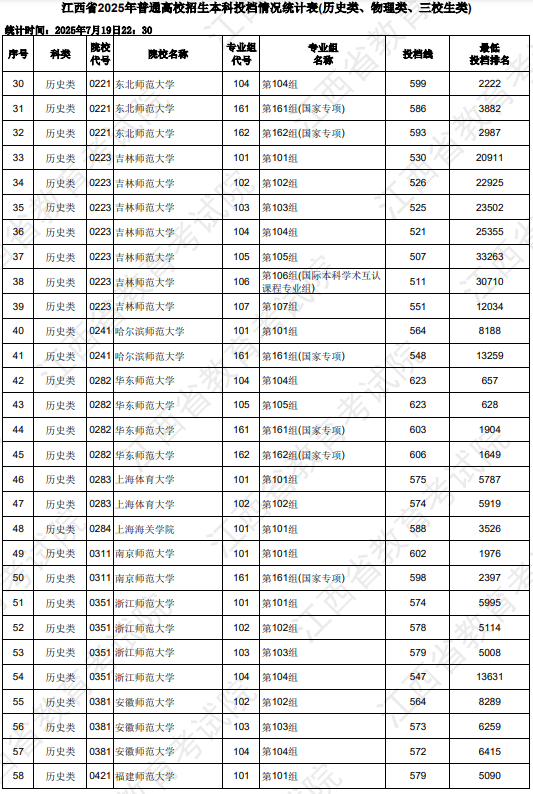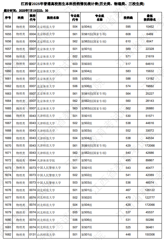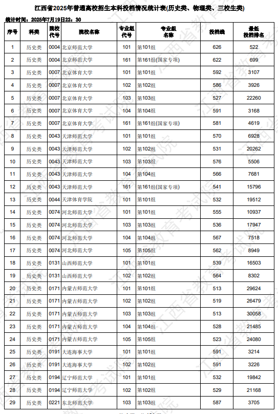 江西省教育考试院公布了2025年普通高校招生本科批次的投档情况统计表,这份数据涵盖了历史类、物理类、三校生类、体育类及艺术类等多个类别,为考生和家长提供了重要的参考依据。通过对这些数据的分析,我们可以深入了解今年江西本科招生的整体情况。
