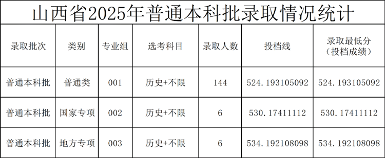 山西省2025年普通高校招生专科(高职)批录取最低控制分数线公告