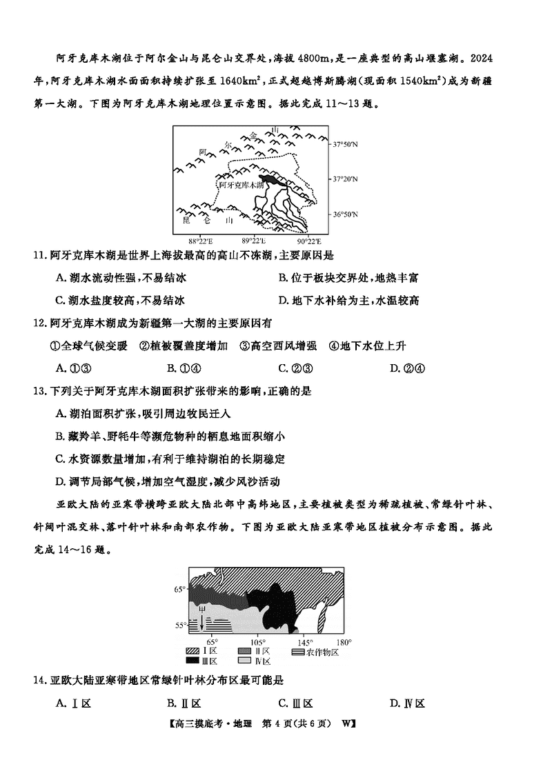 皖南八校2026届高三上学期8月摸底大联考地理试题及答案
