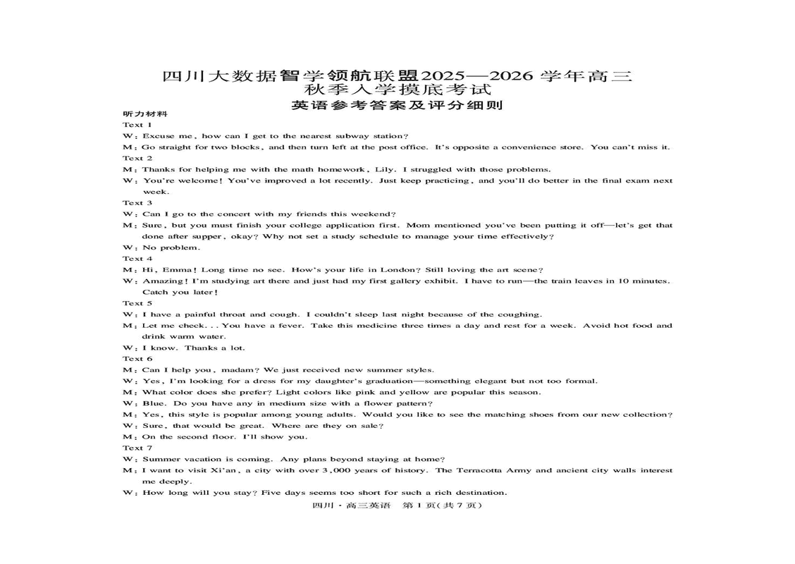四川大数据智学领航联盟2025-2026学年高三秋入学摸底考英语试题及答案