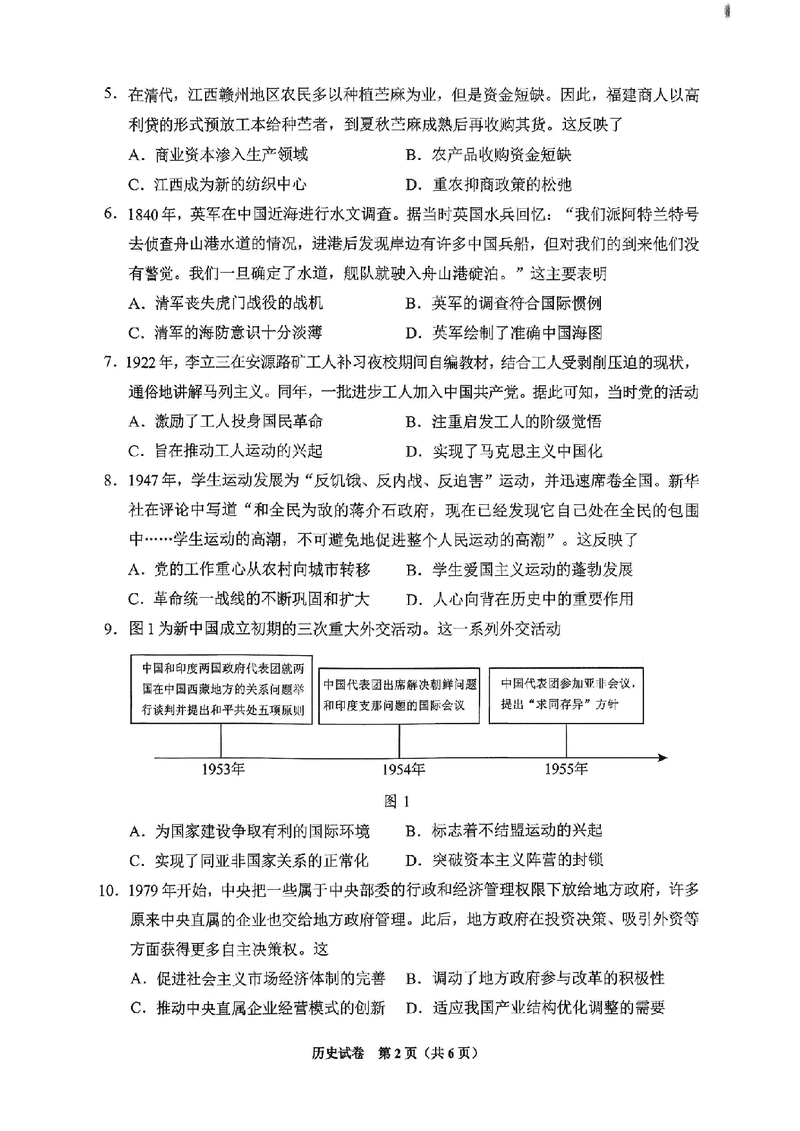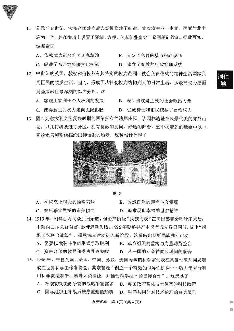 贵阳市、铜仁市2026届高三9月摸底考历史试题及答案
