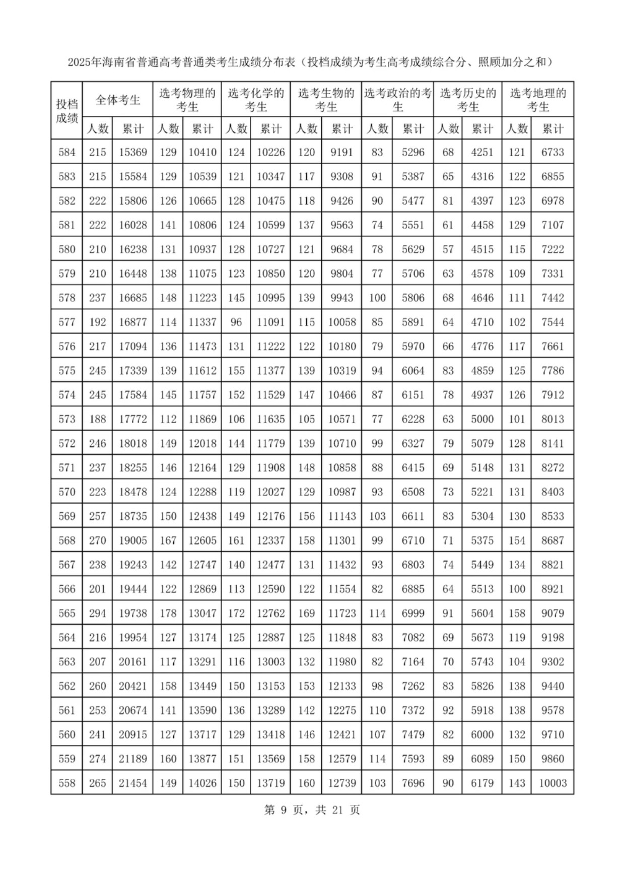 2025海南高考一分一段表汇总