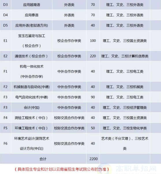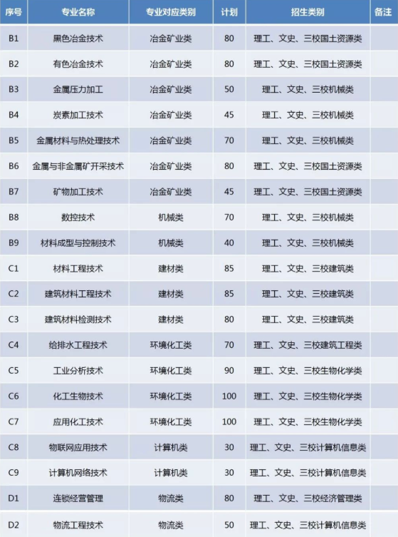 2020年昆明冶金高等专科学校单独招生计划与专业