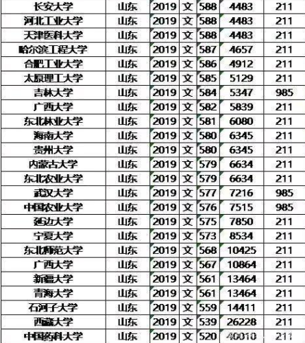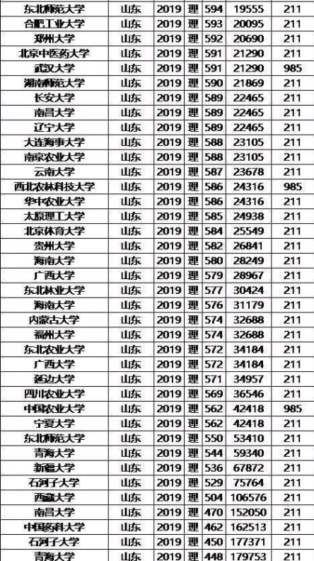 985/211大学2019年山东录取分数线及位次排名