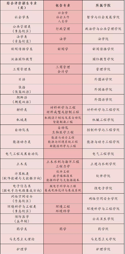 2020年山东大学综合评价招生专业
