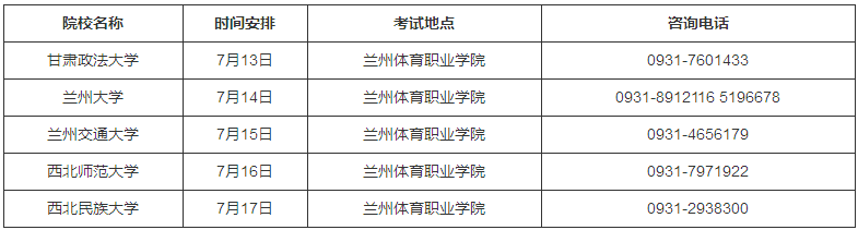 为有效统筹管理甘肃省2020年高水平运动队现场考试,做好考试过程中疫情防控工作,所有高校高水平运动队测试工作统一安排在兰州体育职业学院(筹)(原兰州市体育运动学校)举行,地址:兰州市兰州新区黄河大道999号,具体时间安排如下: