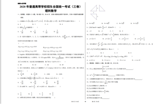 2020全国3卷高考理科数学试题【Word真题试卷】