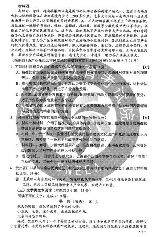 2020宁夏高考语文试题及答案解析【图片版】