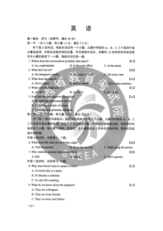 2021年青海高考英语真题答案解析