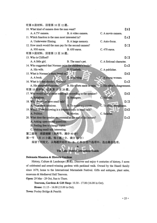 2020青海高考英语试题