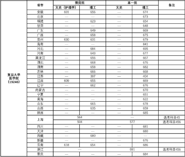 | 上海 | 提前批 | 专业组1(法医学)564;专业组2(护理学含助产士方向)505 |