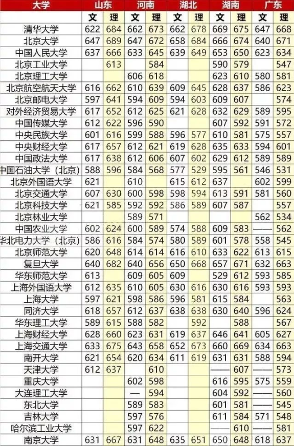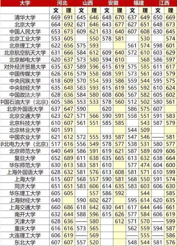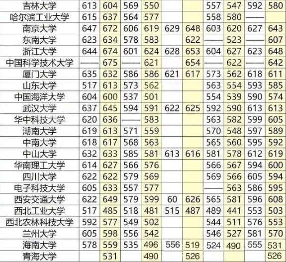 全国大学录取分数线表 重点大学高考分数线汇总