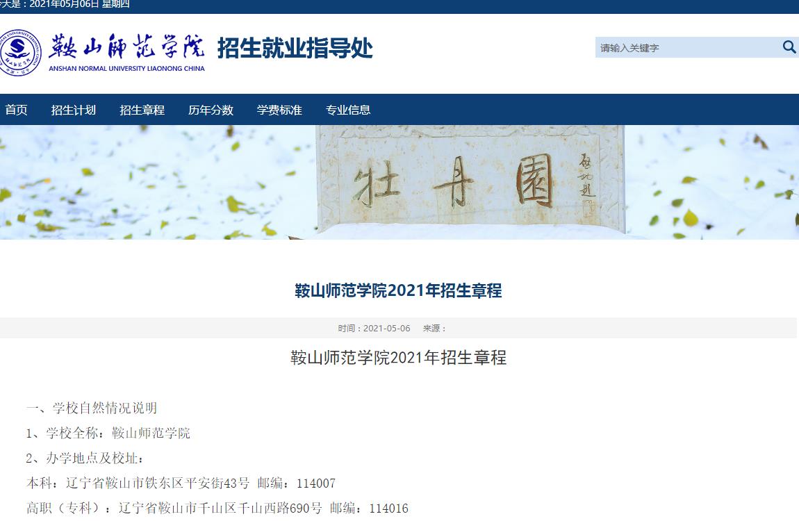 21-05-07鞍山师范学院2021年招生章程