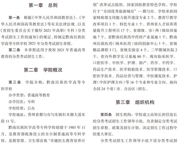 2021黔南民族幼儿师范高等专科学校分类考试招生章程