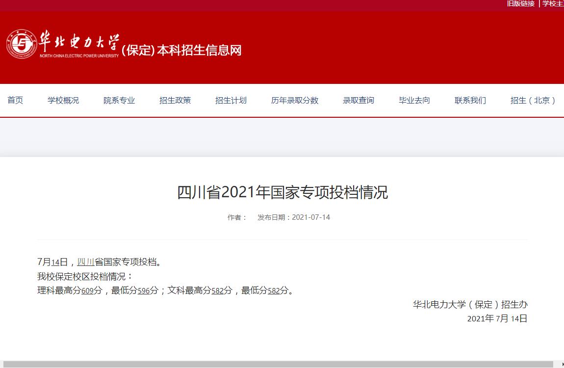 关于华北电力大学保定校区于2021-07-15 09:41:44发布的华北电力大学保定校区2021年四川省国家专项投档情...