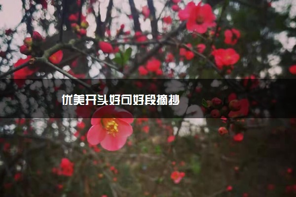 积累一些好段对我们写作是有用的,小编整理了优美开头好句好段,来看一下!优美开头好句好段摘抄1、我相信雨是云的尸体,埋葬人...
