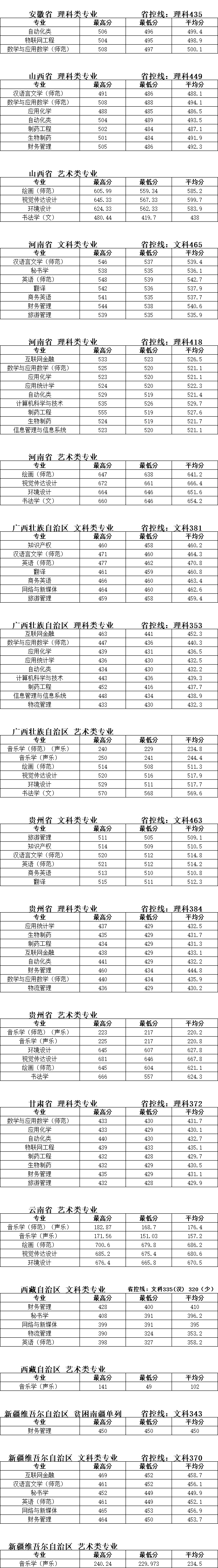 西南医科大学2020年分省分专业录取分数统计表