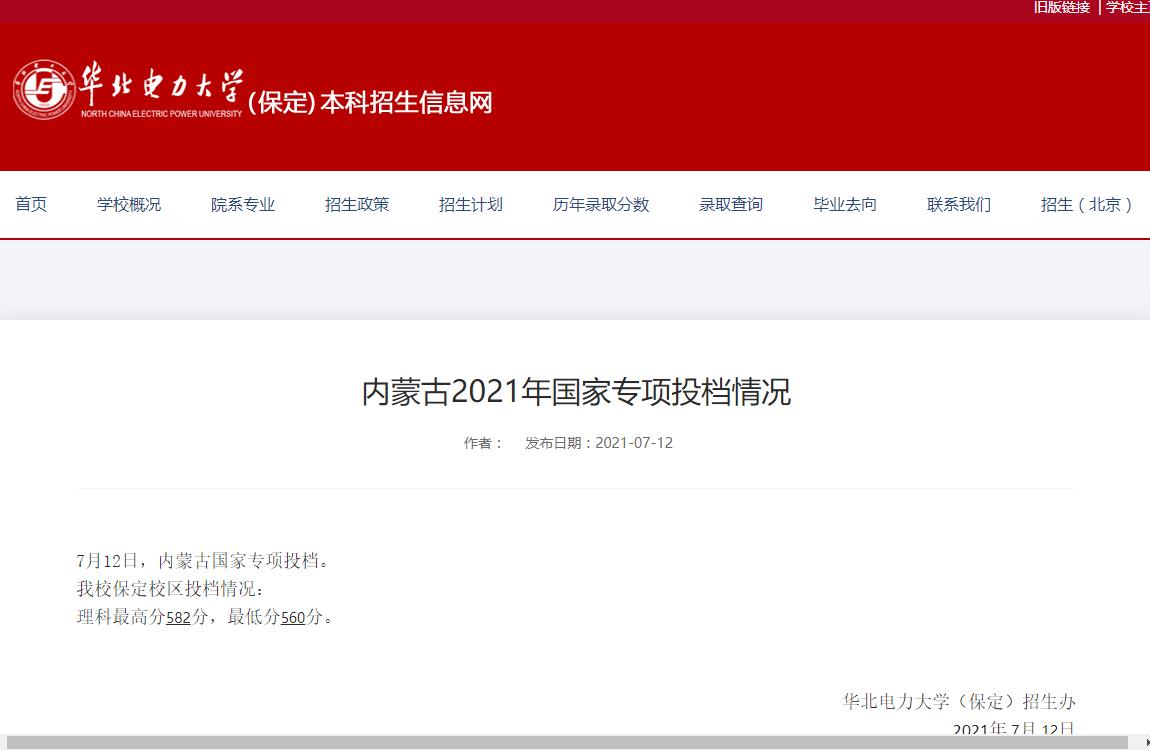 关于华北电力大学保定校区于2021-07-15 11:41:00发布的华北电力大学保定校区2021年贵州省国家专项投档情...